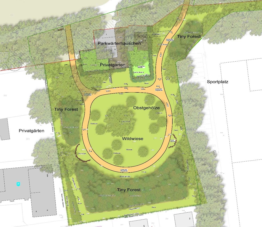 Ausschnitt Planzeichnung Tiny-Forest, Stadt Bochum